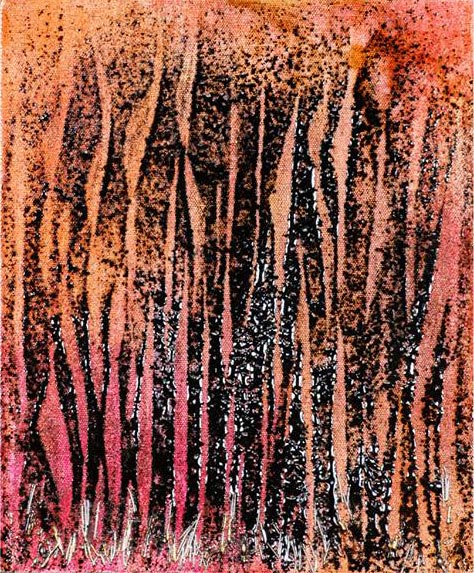 Transforming raw materials like tar, metal, and glass into evocative mixed media art forms.